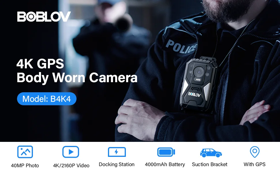 BOBLOV B4K4 Body Worn Camera 4K 128G Video Recorder GPS IP67 Police Security Camera 4000mAh Battery 15Hrs Recording Body Camera