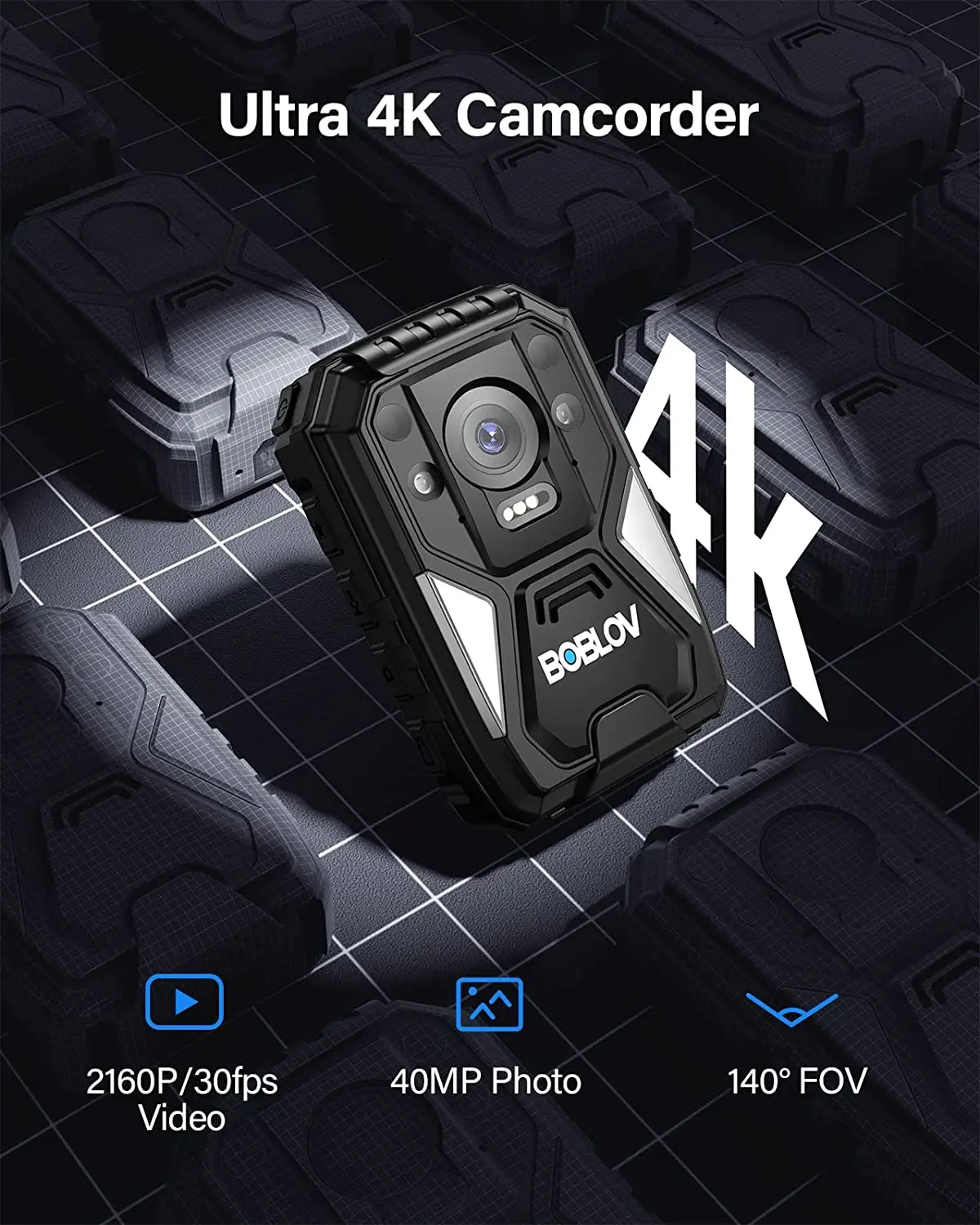 π·<4K Video Camera with Audio Recording>π· BOBLOV New 4K/2160P Body Mounted Camera equipped with 4K video resolution and 40MP photo size, could provide you the high-quality imagery and create visually appealing content in your daily life or vacation holidays.