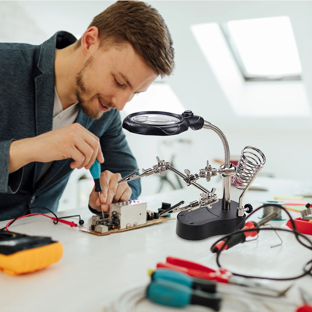 Multifunction Magnifier Auxiliary Clip LED Light Magnifier Desktop Adjustable Support Helping Repair Tools for Reading Engraving