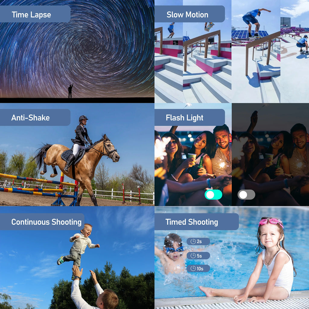 16X Zoom/Time-lapse/Slow Motion/ Loop Photography/Auto Focus/Continuous Shoot